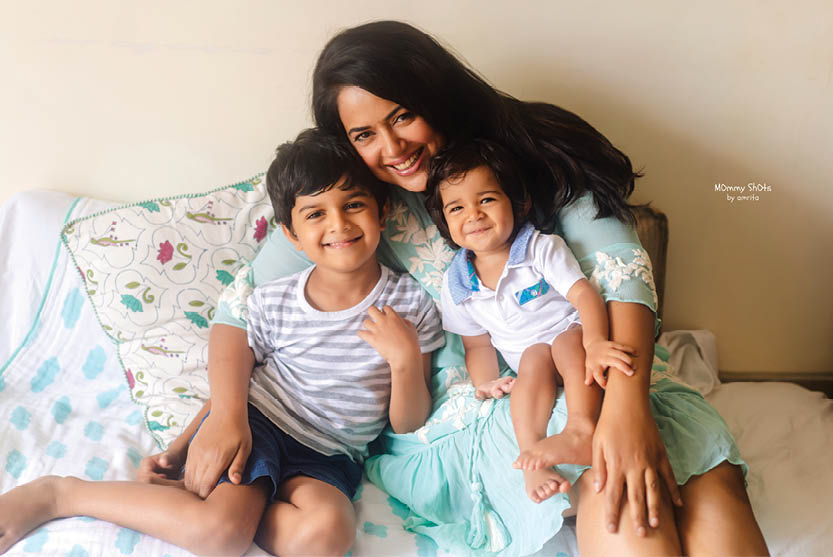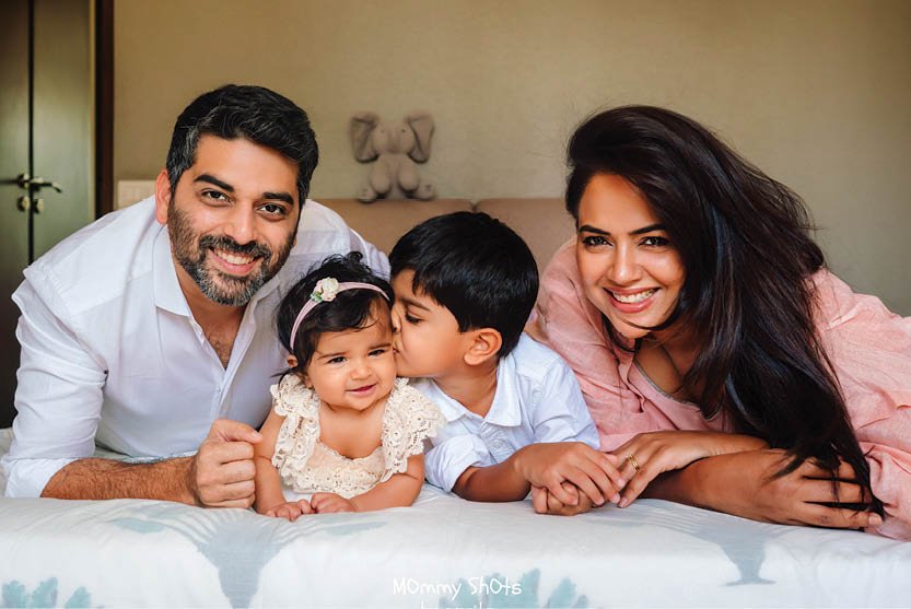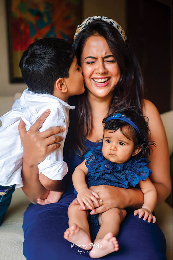 I was very private about my life and didn’t have the trust factor with others when I had my children. I didn’t want anyone to click them or didn’t want to share pictures of my children with anyone. I had this tussle going on in my brain that I didn’t want anyone to shoot my pictures. Maybe because I was photographed so much before in my acting days that I didn’t want my children to be exposed to cameras with a studio setup. But when Amrita came, my children were so comfortable with her. She was so sweet that we are now hooked. Now if she doesn’t call me for my milestone, I get angry with her. I wasn’t ready to do any photoshoots with my kids, but when Amrita reached out to me after watching my Tamil film and my TEDx Talk, we shot with my new-born Nyra. Mommy Shots By Amrita made us so comfortable that we continued to shoot all my milestones with them. I was not prepared for my first shoot and I used clothes from my existing wardrobe, but Nyra got a full new wardrobe by them for the photoshoot. Nyra got all the pretty lacy numbers for the shoot. I’ve told Amrita to get me some lacy numbers too next time (she laughs).