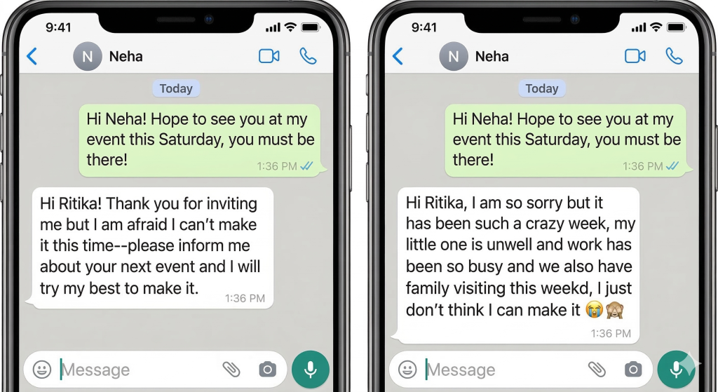 This is not to be taken so literally; I am not advising you to start giving one-word rejections that can come off as rude or abrupt. You technically have every right to do that, but we can still establish boundaries while remaining polite and kind. What the saying means is that you do not have to explain yourself just because you are saying no. You don’t have to justify your nos any more than you justify your yeses. By explaining yourself, you are implying to yourself and the other person that you are coming up short or not doing something you’re supposed to. But the fact is, no one is entitled to your time and energy, so you do not have to apologise when you opt out.